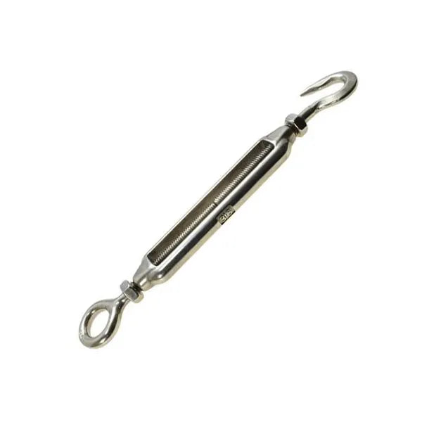 Quality 316 Marine Grade Stainless Steel Open Body Hook + Eye Turnbuckle.