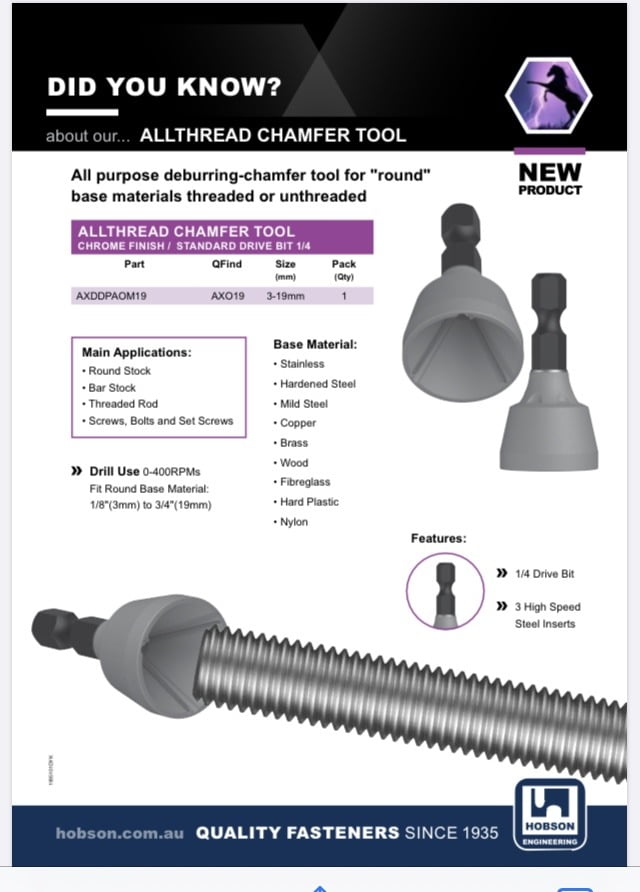 Allthread Chamfer Tool - Standard 1/4" Drive Bit