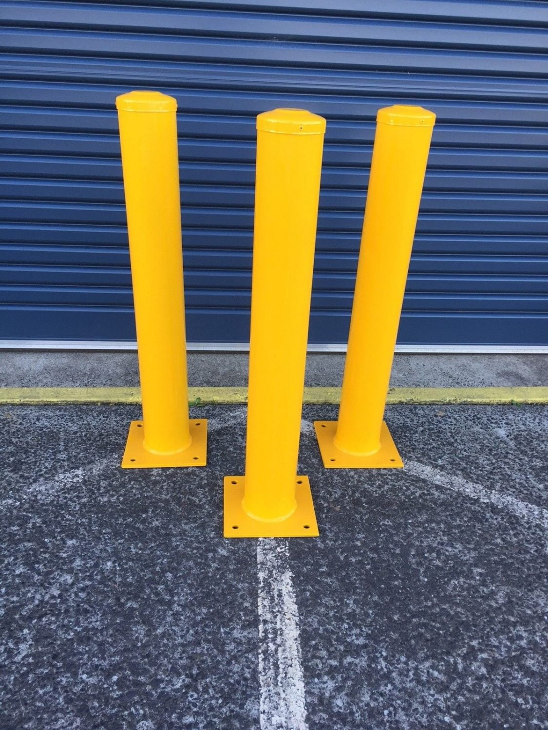 Powder Coated Yellow Steel Security Bollard with Cap 1 Metre High x 114mm OD